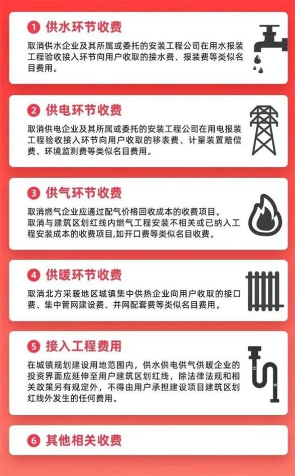 4. 建筑區(qū)劃紅線內(nèi)供水供電供氣供暖管網(wǎng)的建設(shè)安裝、更新改造、維修維護(hù)等費(fèi)用已由政府承擔(dān)的,不得再向用戶收取。