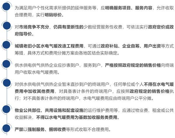 5. 新建商品房、保障性住房等建筑區(qū)劃紅線內(nèi)供水供電供氣供暖管線及配套設(shè)備設(shè)施的建設(shè)安裝費(fèi)用統(tǒng)一納入房屋開發(fā)建設(shè)成本,不得另外向買受人收取;投入使用后,可依法依規(guī)移交給供水供電供氣供熱企業(yè)實(shí)行專業(yè)化運(yùn)營管理,相關(guān)運(yùn)行維護(hù)等費(fèi)用納入企業(yè)經(jīng)營成本。