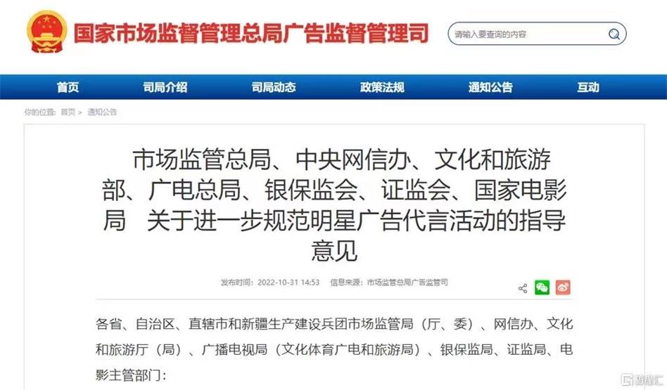 近年來明星廣告代言“翻車”事件頻發(fā),嚴(yán)重破壞市場秩序、污染社會風(fēng)氣,亟待切實整治。10月31日,市場監(jiān)管總局、中央網(wǎng)信辦、文化和旅游部、廣電總局、銀保監(jiān)會、證監(jiān)會、國家電影局等七部門聯(lián)合發(fā)布《關(guān)于進(jìn)一步規(guī)范明星廣告代言活動的指導(dǎo)意見》(以下簡稱《意見》),對明星代言做出明確規(guī)范!兑庖姟访鞔_了明星的定義,把網(wǎng)絡(luò)紅人也納入到規(guī)范中,規(guī)范了明星虛假、違法代言,堅決依法處罰到明星本人等。