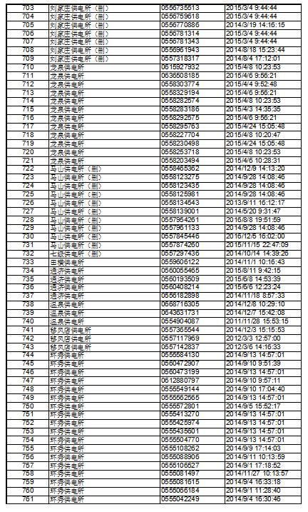 因提供賬號錯誤、打款失敗、聯(lián)系信息失效、證明材料不齊全等原因,導(dǎo)致部分客戶辦理銷戶后,電費賬戶余額未成功退費,F(xiàn)將銷戶滿3年客戶的相關(guān)信息進(jìn)行公示,請名單中的客戶于2020年7月31日前到所屬供電所辦理退費業(yè)務(wù)。