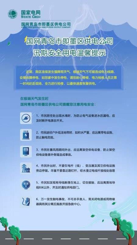 國網(wǎng)青島市即墨區(qū)供電公司汛期安全用電溫馨提示