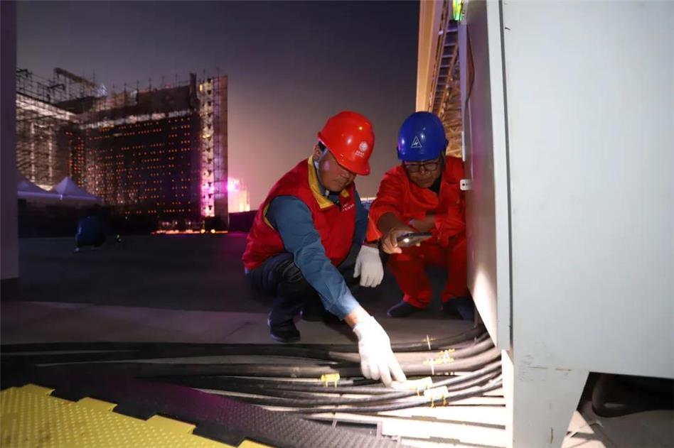 ▲彩虹共產(chǎn)黨員服務(wù)隊(duì)開展山東省重大項(xiàng)目集中開工活動(dòng)青島分會(huì)場(chǎng)保電。
