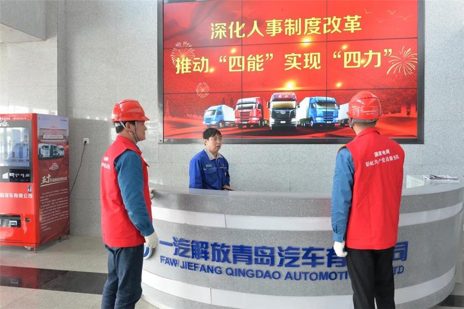 ▲彩虹共產(chǎn)黨員服務(wù)隊(duì)走訪一汽解放、一汽大眾等重點(diǎn)客戶,了解企業(yè)用電需求,最大限度降低對(duì)企業(yè)生產(chǎn)的影響。