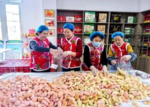 2024年,向陽新村成立“青島金谷臻禾農(nóng)業(yè)有限公司”,打造“信大嫂”“谷道向陽”兩個品牌。這些帶著榼子花紋的巧果,通過“線上+線下”銷往全國!懊磕隇榇寮w增收約20萬元!蓖鯐跃晖嘎,工坊還承接研學活動,讓孩子們親手體驗巧果制作,讓非遺傳承在實踐中延續(xù)。