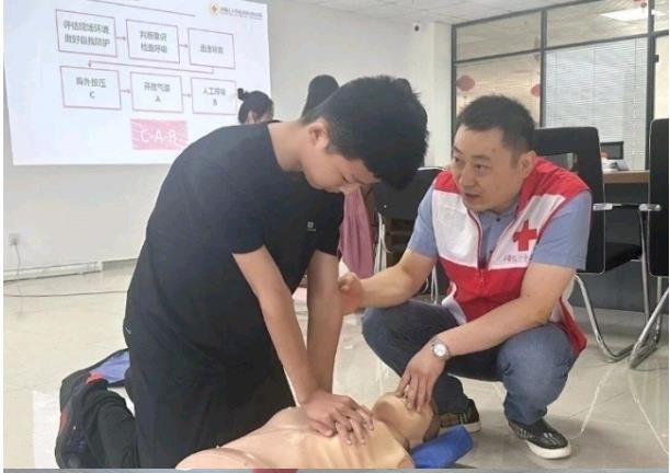 在理論講解環(huán)節(jié),紅十字會的老師憑借豐富的專業(yè)知識和教學(xué)經(jīng)驗,用簡潔明了的語言系統(tǒng)講解了應(yīng)急救護(hù)的基礎(chǔ)知識。從如何快速判斷現(xiàn)場環(huán)境安全性、識別傷者意識與呼吸狀態(tài),再到進(jìn)行胸外按壓和人工呼吸,每一個步驟都講解得清晰透徹,并結(jié)合實際案例,讓同學(xué)們直觀感受到“黃金急救時間”的重要性,深刻理解掌握急救技能的必要性。