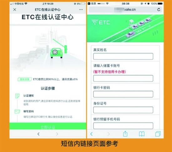 青島市民于先生就差點上了騙子的當(dāng)。據(jù)記者了解,山東莒縣公安近日破獲一起“冒充ETC認證短信”詐騙案,辦案民警告訴早報記者:上當(dāng)?shù)娜送Χ,大家要警惕?br /> 鏈接中要求填關(guān)鍵信息