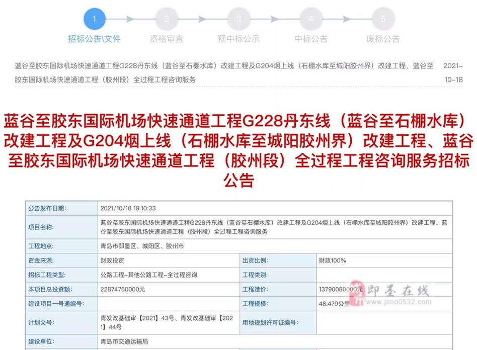 投資228億!藍(lán)谷至膠東機(jī)場(chǎng)快速路招標(biāo)公告發(fā)布!將連接即墨、城陽(yáng)、膠州