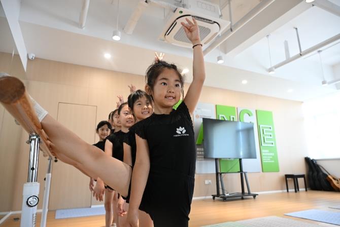 7月17日,天氣炎熱,驕陽似火。記者在新惠社區(qū)涼爽的舞蹈培訓(xùn)室里看到,孩子們在老師的精心指導(dǎo)下練習(xí)舞蹈基本功。孩子們從練習(xí)站姿、坐姿開始,通過趴胯、側(cè)壓、旁壓腿等舒展動作來訓(xùn)練身體的柔軟度。黃淑芝是一名企業(yè)職工,由于工作忙一直未送孩子去興趣班,但是孩子特別喜歡堅持要學(xué)習(xí)舞蹈,所以今年暑假,她早早通過微信,報名參加了社區(qū)開辦的舞蹈培訓(xùn)班,讓孩子不出社區(qū)就能學(xué)習(xí)舞蹈,充實了寒假生活,對于她來說是既開心又放心。